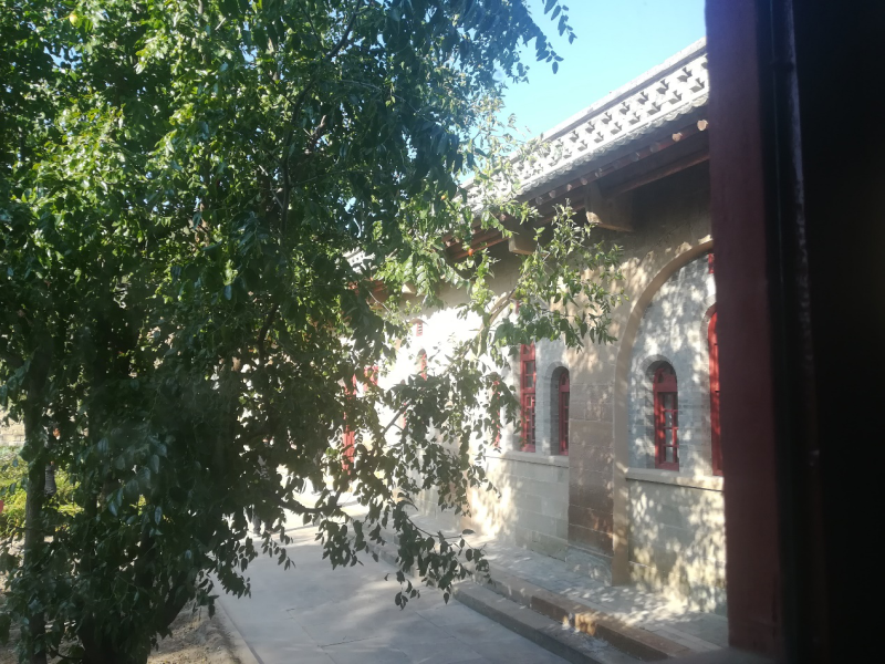 土黃色的墻壁襯映著土紅色的木門,好像被沉浸在歷史的一抔迷蒙的煙云之中,讓來這的游客不禁想起中國抗日戰爭的歲月。
