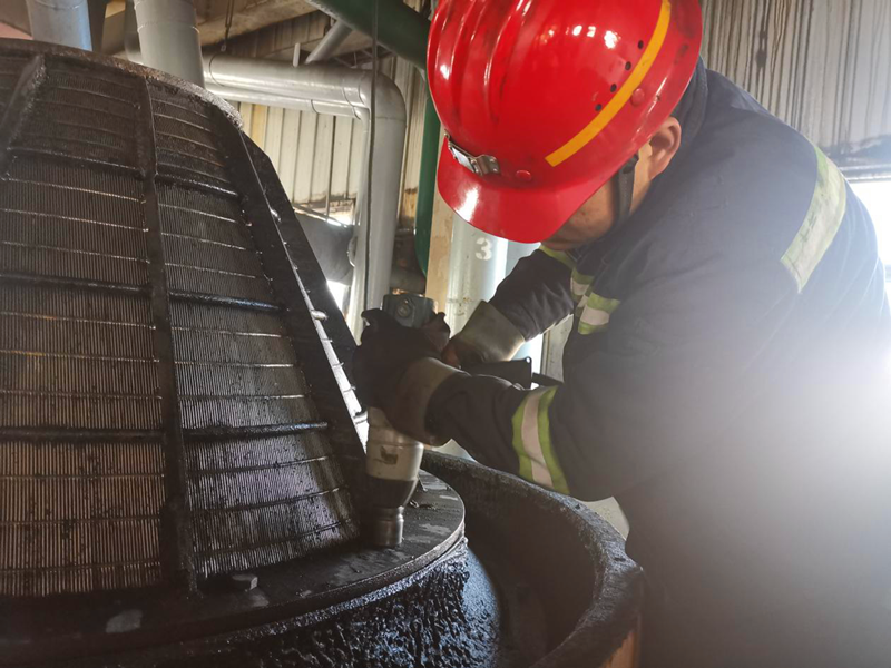 該廠對照近期生產過程中存在的各類問題,分類整理匯總,積極組織各班組職工對本班組包機區域內設備逐一進行檢查。廠內按照“每日一查,查不漏項,查必從嚴”的原則,對生產系統中存在的跑、冒、滴、漏問題進行整改,及時消除設備潛在隱患,確保安全隱患整改不留死角。在自查自檢的基礎上,對設備進行不定期系統性檢查,將問題進行匯總上報,為制定月度檢修計劃制定科學有效的依據。同時,制定詳細的檢修計劃,建立完善檢修臺賬,增強檢修人員責任心,達到檢修質量上層次,上水平,確保各區域設備安全平穩運行,從根本上杜絕設備出現故障。