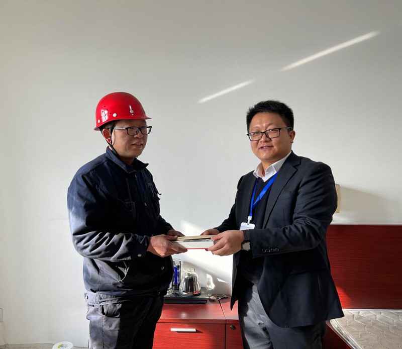 王振平代表公司為賀志郎送上暖暖的心意,并代表個(gè)人贈(zèng)送讀書一本,希望賀志郎在工作之余,不斷學(xué)習(xí)提升。他強(qiáng)調(diào),企業(yè)發(fā)展的根本目的是實(shí)現(xiàn)廣大員工安居樂業(yè),公司不斷完善困難員工幫扶機(jī)制,十分重點(diǎn)關(guān)注困難員工,歷盡所能幫助他們解決實(shí)際問題,切實(shí)讓職工感受“新能”大家庭溫暖。