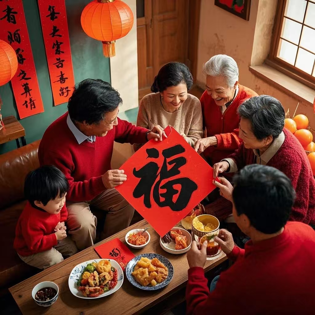 貼春聯,全家老少最莊重的儀式,每到貼春聯老爸總會叮嚀:“這可是一項不容馬虎的工作”。大紅的福字,字體圓潤飽滿,透著吉祥喜慶。正貼的福字端莊大方,寓意福氣正正當當降臨家門;倒貼的福字則巧妙地利用 “倒” 與 “到” 的諧音,傳遞著 “福到了” 的美好期許。貼福字時,長輩們念叨著這些傳統習俗,孩子們瞪大眼睛認真聆聽,手上也跟著比劃。簡單的動作,承載著深厚的文化底蘊,將對美好生活的向往牢牢地黏在了家門上。